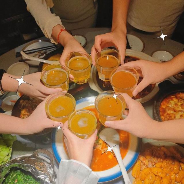 桌上有肉,杯中有酒,