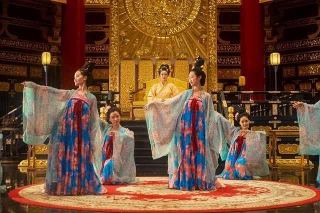 zhongqiuyeyoutiantangmingtang,dadianzaigezaiwu,fangfohuidaoqiannianqiandatangshengshi。zhongqiuzhiri,yiqunshengzhuanggejibaitiandengquelouyiduhuihongshengshi,bangwanzaihebianfangzhushuidengxuyuan、思念家鄉,夜晚在華麗的舞台歌舞升平。一派大國盛世、國泰民安的場景。