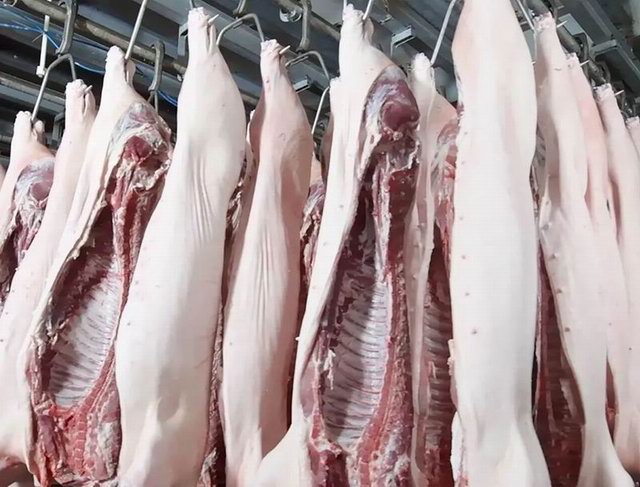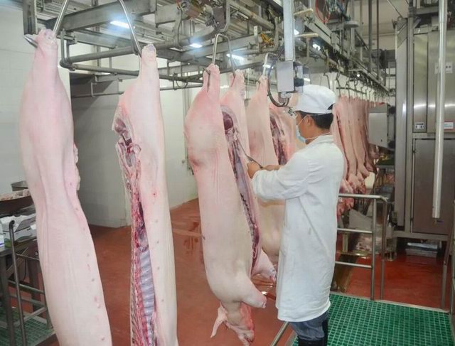 毛豬車輛入廠時嚴格車輪消毒池和人員專用通道消毒;卸車後經過清洗、消毒、烘幹等環節徹底消殺後方可出廠,確保安全;