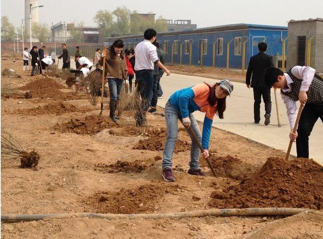 挖坑植樹 綠化廠區